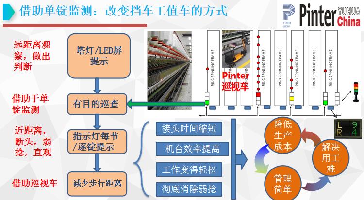 采用電磁感應(yīng)原理,電磁感應(yīng)器獨(dú)立自由的安裝在固定軌道上,當(dāng)需要維護(hù)時(shí),可單獨(dú)拆卸電磁感應(yīng)器,非常方便,維護(hù)成本低。不受飛花、光線等影響,使用壽命長,性能穩(wěn)定,感應(yīng)距離范圍廣,不受綱領(lǐng)型號(hào)的影響,生頭方便,無干涉。一方面在生產(chǎn)過程中減少用工;另一方面,生產(chǎn)的全過程實(shí)時(shí)監(jiān)控:它能夠在問題發(fā)生的第一刻提醒,將損失減到最低,改變擋車工值車方式,減少無效勞動(dòng),并可進(jìn)一步明確分工,簡(jiǎn)化了工人的勞動(dòng),提高工作效率。壞錠自動(dòng)顯示和報(bào)警,可有針對(duì)性的對(duì)壞錠進(jìn)行檢查和維修,提高效率。